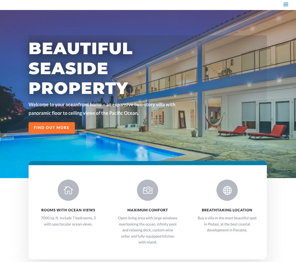 A home owner requested a website to sell their beachfront property. Not only did we want to show off the beautiful house and its surroundings, but also describe the quaint town nearby.